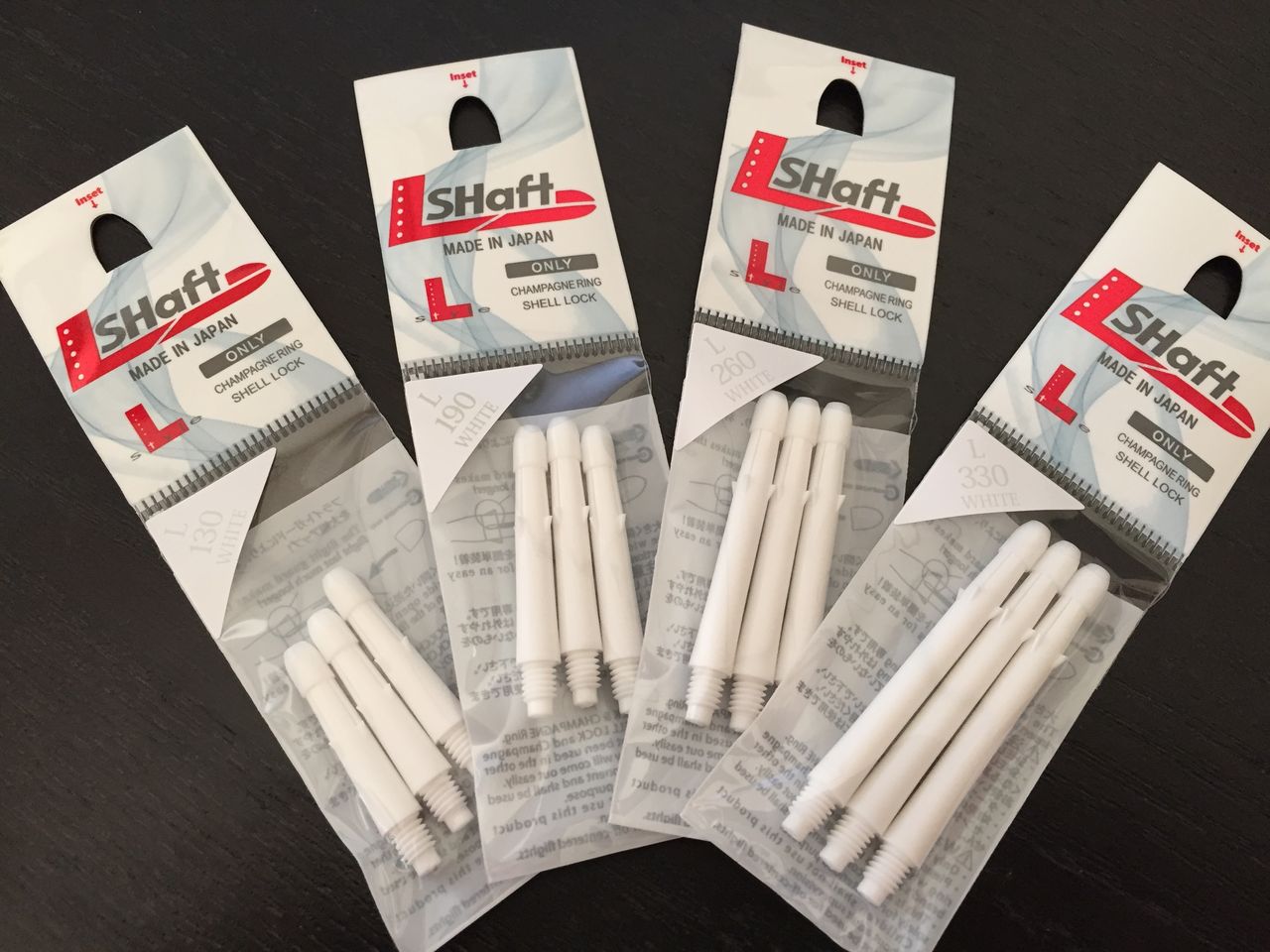 白色というのは、暗いダーツバー等でも矢の飛びが確認しやすいしタイプによってはこのシャフトを自分の飛ばしたいラインに合わせたい等、かなり多くの選手が白いシャフトを好んで使用しているんですよね。